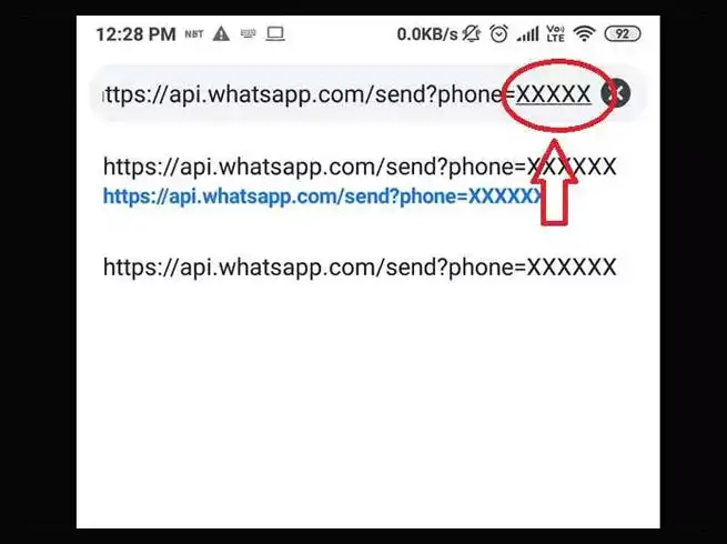 बिना नंबर सेव किए वॉट्सऐप मेसेज भेजने के लिए सबसे पहले अपने फोन या कंप्यूटर में इंटरनेट ब्राउजर को ओपन करें। ब्राउजर के अड्रेस बार में 'https://api.whatsapp.com/send?phone=XXXXXXXXXXX' में टाइप करें। बता दें कि इस लिंक में X की जगह आपको कंट्री कोड के साथ मोबाइल नंबर एंटर करना है। मान लीजिए कि आपको 111333444555 नंबर पर मेसेज भेजना है, तो आपका url https://api.whatsapp.com/send?phone= 91111333444555 होगा।